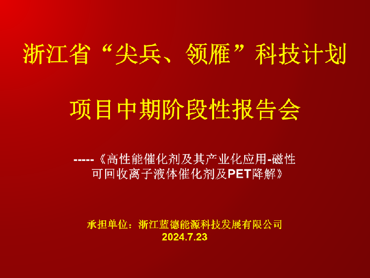 Zhejiang Ldet Energy Technology Development Co., Ltd. ดำเนินงานวิจัยและพัฒนาโครงการวิทยาศาสตร์และเทคโนโลยีที่สำคัญ "แนวหน้า" และ "ผู้นำ" ของมณฑลเจ้อเจียง ได้แก่ "ตัวเร่งปฏิกิริยาประสิทธิภาพสูงและการใช้งานทางอุตสาหกรรม - ตัวเร่งปฏิกิริยาของเหลวไอออนิกที่รีไซเคิลได้ด้วยแม่เหล็ก และการย่อยสลาย PET" ทีมวิจัยและพัฒนาโครงการของ Ldet ประสบความสำเร็จในการพัฒนาเทคโนโลยีการเตรียมตัวเร่งปฏิกิริยาของเหลวไอออนิกที่ใช้โคบอลต์นาโนเมทัลรุ่นแรก "สามในหนึ่งเดียว" ประสบความสำเร็จในการหมัก PET อย่างมีประสิทธิภาพ และได้รับโมโนเมอร์ BHET ที่มีความบริสุทธิ์สูง การทดลองนำร่องเสร็จสิ้นแล้วและได้ผลดี เมื่อเปรียบเทียบความคืบหน้าในการทดลองขนาดเล็กกับข้อมูลสาธารณะของบริษัท Ornica ในเนเธอร์แลนด์ ผลลัพธ์ที่ได้ก็ก้าวไปสู่ระดับสูงระดับนานาชาติแล้ว ตัวเร่งปฏิกิริยาของเหลวไอออนิกที่ใช้โลหะนาโนที่พัฒนาขึ้นเองของเราได้สำรวจเส้นทางนวัตกรรมชั้นนำของโลกสำหรับการรีไซเคิล PET แบบวงปิดอย่างมีประสิทธิภาพด้วยวิธีการทางเคมี เพื่อให้ได้ "สารเคมีที่มีความบริสุทธิ์สูงและคุณภาพสูง BHET"