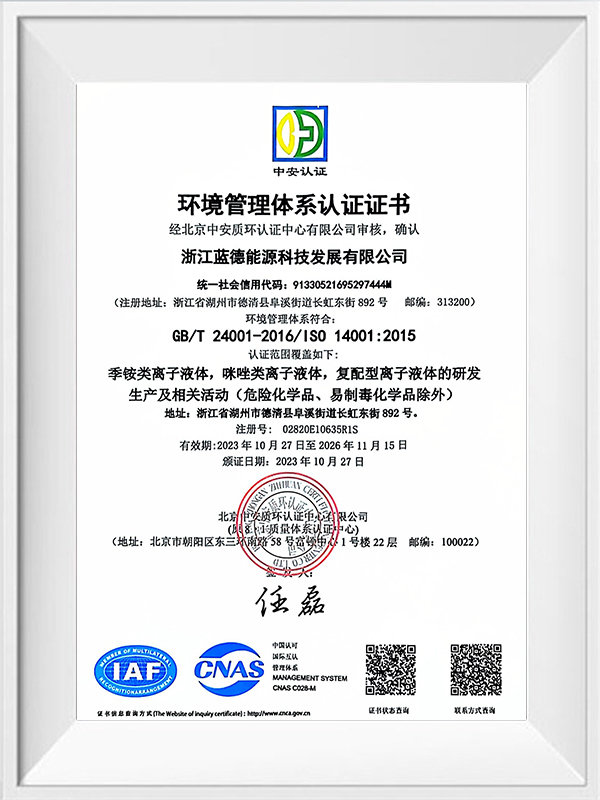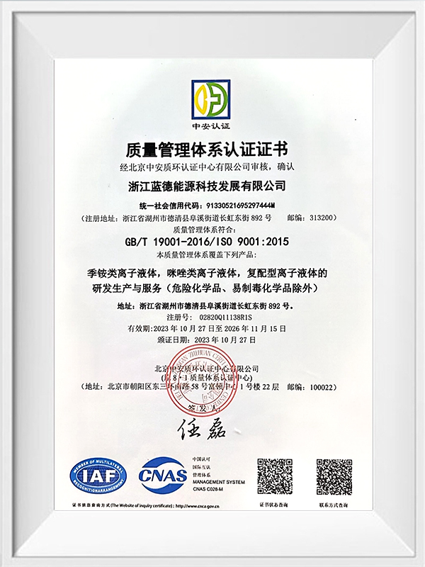 Zhejiang LanDe Energy Technology Development Co., Ltd. (LETD) เป็นบริษัทผลิตของเหลวไอออนิกที่ก่อตั้งขึ้นในปี 2009 มีสำนักงานใหญ่อยู่ที่เลขที่ 892 ถนน Changhong East เขตพัฒนาเศรษฐกิจเทศมณฑลเต๋อชิง มณฑลเจ้อเจียง ทุนจดทะเบียนของบริษัทคือ 36.9 ล้านหยวน และสินทรัพย์รวมอยู่ที่ 220 ล้านหยวน